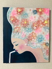 サイズ : 縦460mm × 横380mm × 奥行き20mm 素材 : キャンバスボード アクリル絵具 額装 : なし 制作年 : 2017年
